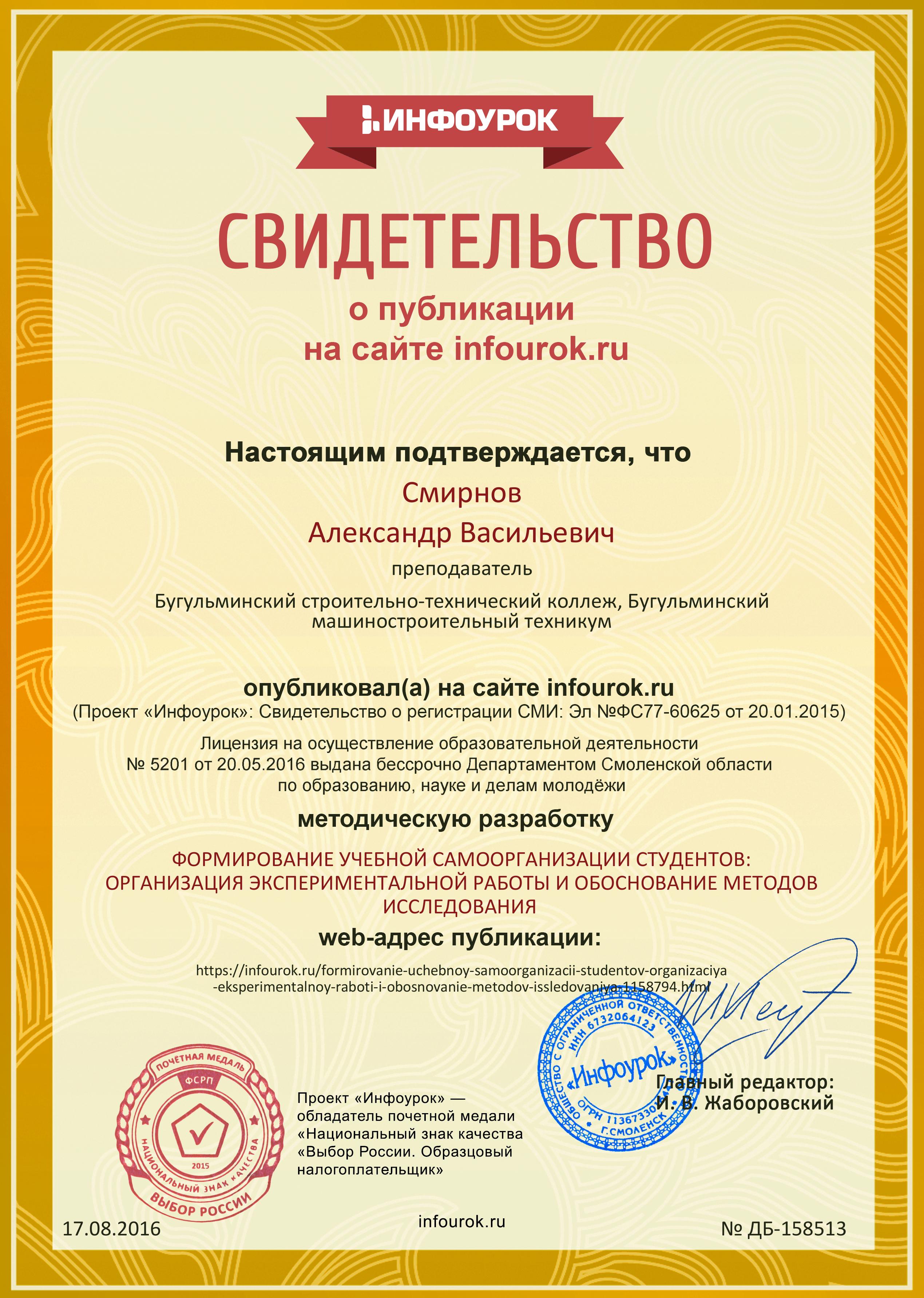 3. Формирование мотивации учебно-познавательной деятельности в профессиональном становлении студентов филиала вуза /Смирнов А.В., Шамсутдинов Р.А. //Образование. Наука. Научные кадры. 2015. № 3. С. 245-248. (ВАК)