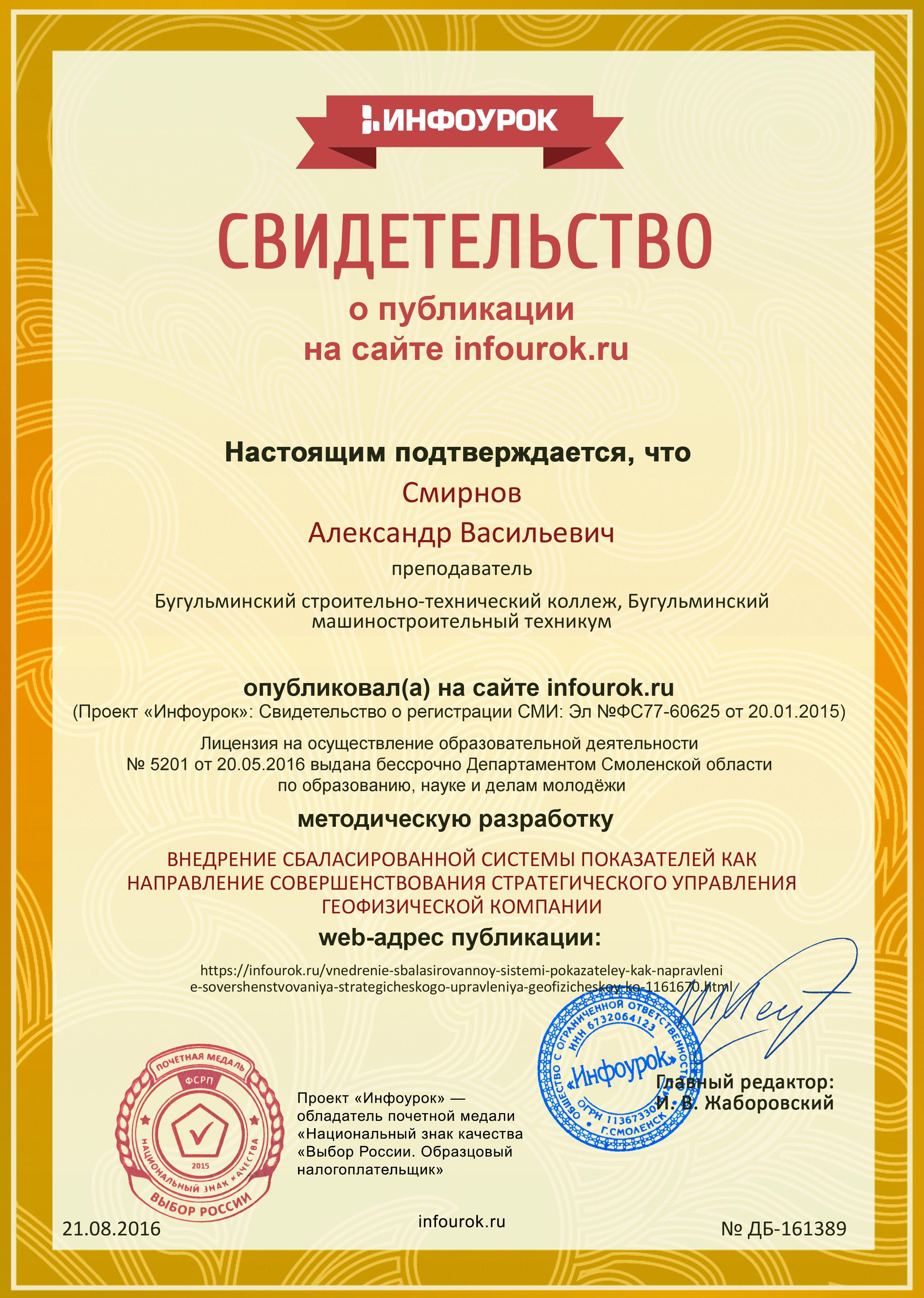 15. Методическая разработка «Игра «Умники» «Экономика: науки и хозяйство. Экономическое развитие и рост" //Сайт «Videouroki.net». – Свидетельство № 99701233.